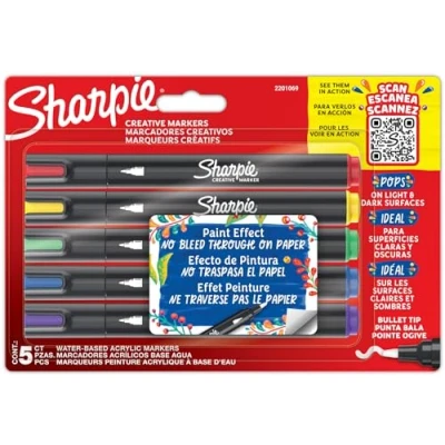Sharpie Creative Marker Acrylic Paint Pens Water Based Markers No Bleed Ink Writes on Most Surfaces Bullet Tip School & Revision Supplies Assorted Colours 5 Count