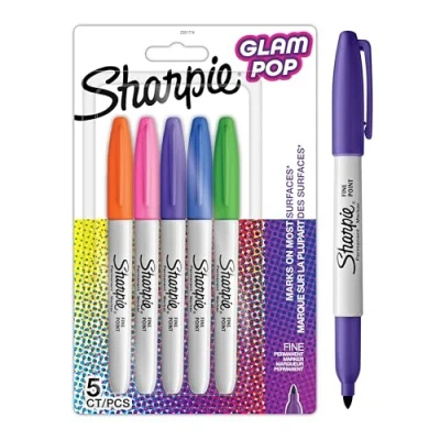 AmazonSharpie permanent markers with ink that marks on paper, plastic, metal, and most other surfaces Glam Pop colours feature eye-catching, bright shades of each hue for vibrant marks Remarkably resilient ink dries quickly and resists fading and water Endlessly versatile fine tip makes impressively bold, detailed marks 5 permanent marker pens in assorted colours
