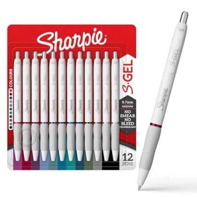 Sharpie S Gel Pens for Writing Medium Point (0.7mm) Assorted Ink Colours White Pearl Barrels 12 Count