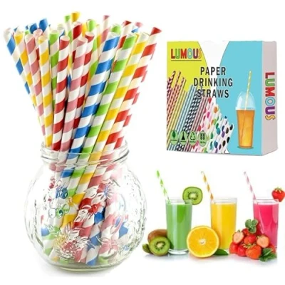 SHARRLA Paper Straws, 150 Pack Drinking Straws Assorted Bio Degradable Wedding Party, Party Restaurant, Juice (150Pcs Multi Colour Stripes)