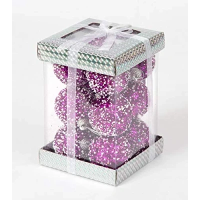 Amazon 12 Glittered soft foam decorative Christmas Baubles. Light weight perfect for Christmas tree decorations. Usage: Christmas tree decoration, Christmas gymnastic rings decoration, Hanging in the ceiling and so on. Order Quantity: 1 box of 12 baubles. Diameter: 4 Cm