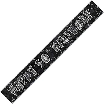 Shatchi 12ft 50th Glitz Happy Birthday Banner Decorations Party Supply, Black/Silver