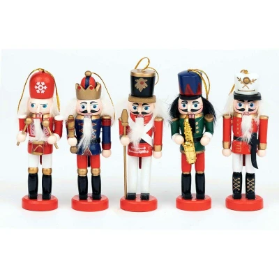 SHATCHI 13cm Wooden Christmas Nutcrackers 5pcs Set Soldiers King Puppet Moving Parts Figurines Tree Hanging Decoration Ornaments