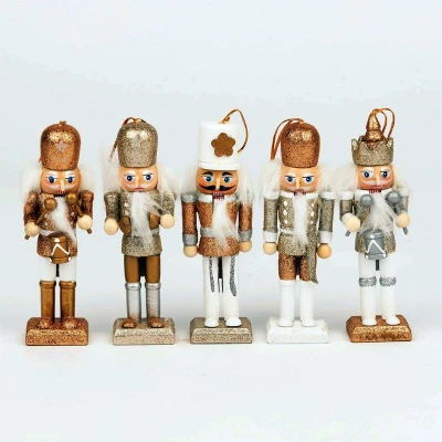 SHATCHI 13cm Wooden Christmas Nutcrackers 5pcs Set Soldiers King Puppet Moving Parts Figurines Tree Hanging Decoration Ornaments