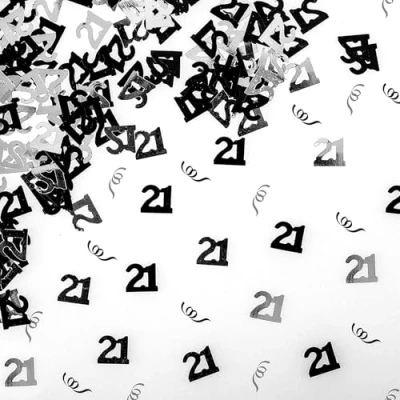 🎊 Pack Includes: Each bag contain 14 gram black and silver confetti, sparkling assortment foil confetti Number 21 Design. 🎊 Design & Material: Glittering with metallic texture, has high luster and color retention, will add fun atmosphere to your party with clear cut age numbers design. 🎊 Occasion: A nice and easy way to decorate table tops. Perfect for Birthday parties, Anniversary parties. Not only for Kids but every age of person will love this. Share joys of your special memorable day with your family and friends. 🎊 Use: Spread them on table, gifts, cards, party invitations, scrapbooks, prom, craft works, make your party interesting and unforgettable. Also, nice to be applied together with other decorative supplies like banners, cupcake toppers,etc. 🎊 Colour: Black & Silver, Size: 1.3cm wide approx., Shape: 21, Manufacturer: Gifts 4 All Occasions Ltd