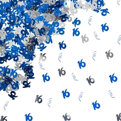 SHATCHI 14g Blue & Silver 16th Birthday Confetti Foil Metallic Glitz Table Scatter Sprinkles Age Bday Party Decorations,12mm