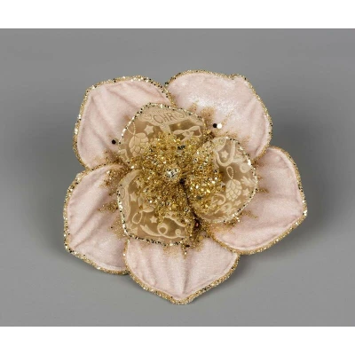 SHATCHI 15cm Deluxe Christmas Glitter Poinsettia Rose Gold Velvet Net Artificial Flower with Metal Clip Tree Decorations Wedding New Year Ornaments