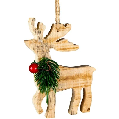 SHATCHI 1pc Rustic Wooden Reindeer Christmas Tree Hanging Decoration Festive Ornaments Xmas Pendant DIY Craft Gift