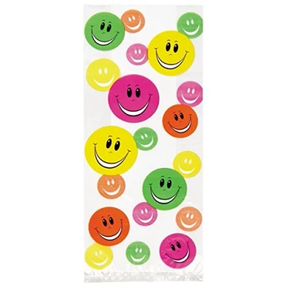 SHATCHI 20 pcs Smiley Cello Favour Plastic Birthday Bags Party Supply, Multi