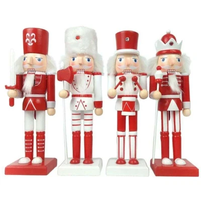 SHATCHI 25cm Red/White Wooden Christmas Nutcrackers 4pcs Set Soldiers King Drummer Puppet Figurines Home Decoration Ornament