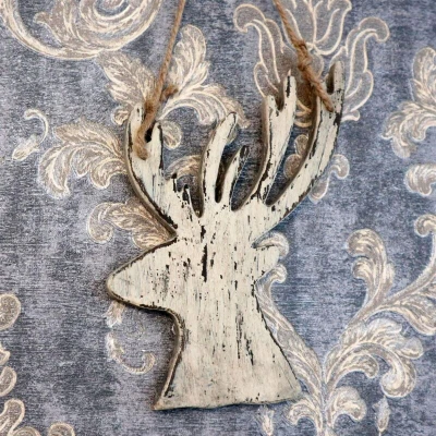 General description Add a touch of festive charm to your home or office with this beautiful cream deer hanging decoration. Measuring 26cm, this wooden decoration is perfect for creating a warm and inviting atmosphere during the holiday season. Technical specifications Dimensions: 26 cm Material: Wood