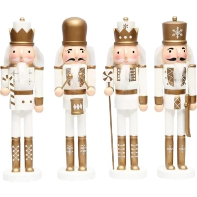 SHATCHI 36cm Gold/White Wooden Christmas Nutcrackers 4pcs Set Soldiers King Drummer Puppet Figurines Home Decoration Ornament