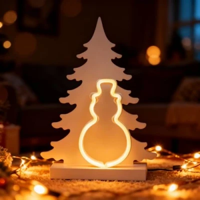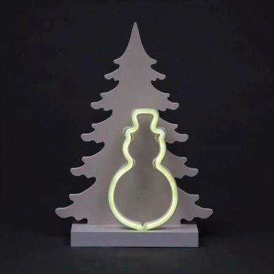 SHATCHI 40Cm Wooden Christmas Tree Decoration Pre Lit LED Neon Snowman Silhouette Scene Ornament Table Window Battery Operated