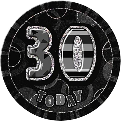SHATCHI 496 30th Happy Birthday Badge Glitz Blue Decorations Unisex Party Supply