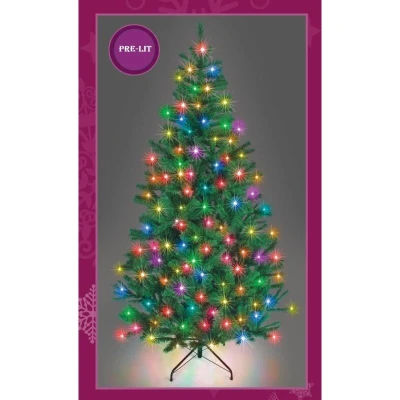 SHATCHI 4Ft 12Ft Pre Lit Artificial Christmas Tree Alaskan Pine Tips Xmas Home Decorations Metal Stand Warm White LEDs, Green W/Multicolour, 6Ft