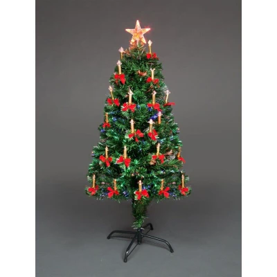 General description Pre-Lit Fibre Optic Christmas Tree creates a stunning effect with minimal effort. This 5ft (150 cm) tree features candle and bow style lights that display multi-color effects and various automatic lighting patterns without the need for a controller. The attractive color effects produced by the fibre optics enhance the visual appeal of your holiday decorations. Technical specifications Height: 5ft (150 cm) Order Quantity: 1 Other information 2ft and 3ft versions come with a base, while 4ft and above include a metal stand. Please note: Images are for illustrative purposes only.