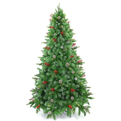 SHATCHI 5Ft/150cm Stockholm Pine Artificial Designer Christmas Tree Berries & Frosted Cones Mixed PE PVC Tips Hinged Branches Bushy Xmas Holiday Home Decorations