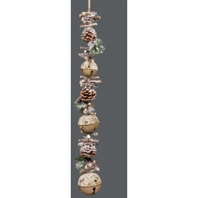 SHATCHI 90cm Garland with Cream Jingle Bells Wooden Sticks, Berries and Pinecones Christmas Home Wall Door Hanger Sleigh Xmas Holiday Hanging Decorations