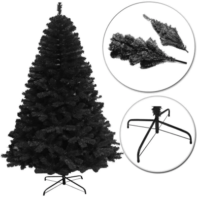 AmazonEasy assembly artificial Christmas Trees. Bend the branches as you wish to create your perfect tree. Tree comes with sturdy metal stand. Flame-resistant PVC material - and made from 100% recycled PVC material This is a cosy artificial Christmas tree perfect for large sized living rooms(7/8/10/12ft) and suitable for small rooms(4/5/6ft) Comes with strong box so can be easily packed away for next year Size: 360cm/12ft, Width: 185-190 cm, Colour: Black, Tips Count: 3134