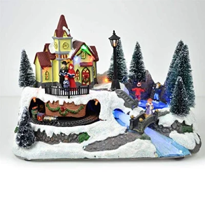 bring some festive magic to your home this christmas with this sculpture set. a beautiful christmas nativity story house sculpture. ideal for under the christmas tree, tabletop centrepiece, fireplace mantel etc. led & fibre optic decorations with christmas music. required 3 aa batteries ( not included) size: 29 x19.5 x 20c