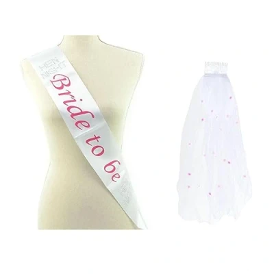 SHATCHI Bride to Be Set Veil and White Satin Sash Hen, Bridal, Bachelorette Party Favors, Multi