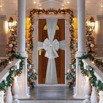 General description Elevate your holiday decor with this Large Silver Door Bow Kit, perfect for Christmas, weddings, baby showers, and special occasions. Transform your entryway with this stunning kit, designed to create a memorable focal point for your celebrations. Technical specifications Ribbon dimensions: 75x750 cm Bow dimensions: 60x80 cm Usage Ideal for decorating doors, windows, walls, or as a backdrop for holiday and event photos. Quick and simple to hang, making decorating hassle-free. Other information Made from premium materials, this bow kit is designed to last and can be reused year after year.
