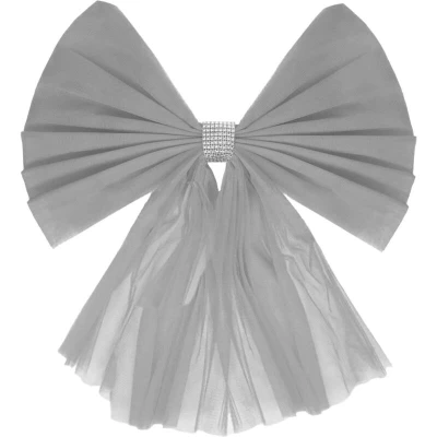 SHATCHI Christmas Silver 9m Giant Bow Cover Front Door Xmas Wedding, Baby Shower Outside Home Decor, Organza, Pack of 1