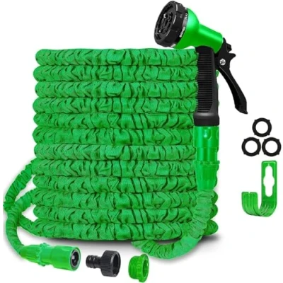 【8 Modes Hose Pipe Spray Gun】The SHATCHI hose pipe spray gun has 8 modes including misting, soaking, full, shower, centre, cone, jet and angle. You'll love this garden hose spray gun. Lightweight & Space Save:The garden hose can expand up to 3 times(100ft) of its original length. It also can retract down to its original shape for easy storage light weight and portable size, convenient to carry. User-Friendly: Its expandable and retractable design, coupled with the adjustable spray nozzle, ensures that users can effortlessly control the water flow and tailor it to suit specific watering needs. Hose hanger supplied. 【Complete Accessories & High Quality】Our expandable hose pipe is available with 1/2'' and 3/4'' connectors and are suitable for most garden taps. It is made of 600D polyester Webbing with No leakage that ensures the hose a longer lifespan. Multi-Purpose Use: The 100FT Expandable Garden Hose Pipe is suitable for various watering tasks, such as gardening, lawn maintenance, washing cars, cleaning windows, and other outdoor cleaning activities. Drain water and avoid direct sun when not in use., Weight: 1.763698096 Pounds, Manufacturer: Shatchi Ltd