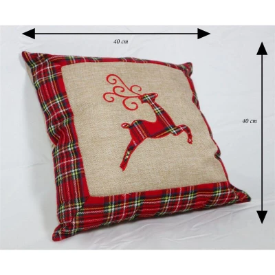 General description Hessian Home Christmas Pillow Cover featuring a charming reindeer design, perfect for adding a festive touch to your bedroom or office decor. Made from a blend of burlap and cotton linen, this pillow cover combines durability with a cozy aesthetic. Technical specifications Dimensions: 40 x 40 cm Material: Burlap and cotton linen