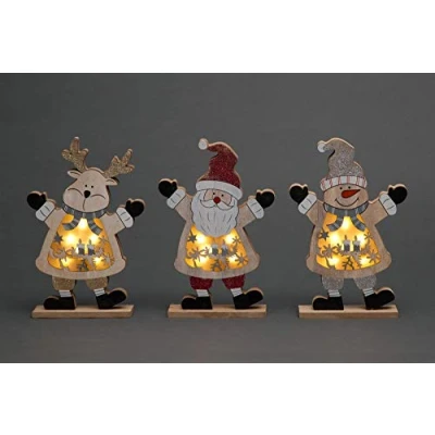 Ideal For Christmas Decoration / Nativity / School Christmas Theme Decorations And Many More Indoor Use Only. Best centerpiece for table with LED lights this wooden crafts will make your christmas decorations more bright and attractive Required 2 AA Batteries ( Not Included ) Shape: Santa, Reindeer, Snowman Size:27cm, Order Quantity: Set of 3 ( 1 Each )