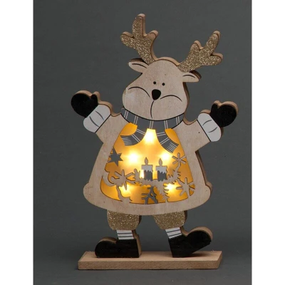SHATCHI LED Wooden Christmas Santa Snowman Reindeer Xmas Home Indoor Table Decorations Ornaments Centrepiece, 27cm, Wood