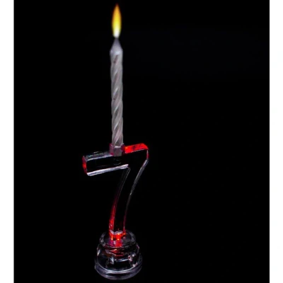 General description Shatchi Birthday Candle Number 7 is a vibrant and eye-catching cake decoration that features a flashing, colour-changing number holder. This unique candle holder is designed to add a fun and festive touch to any birthday celebration. Technical specifications Height of candle holder: approximately 8 cm (3") Height of candles: 6 cm (2.5") Material: clear quality plastic Usage Light-up number holder with a battery fitted Push button located at the bottom to turn on/off the flashing feature Ideal for decorating birthday cakes