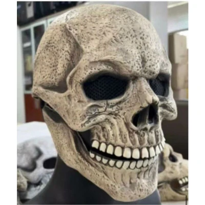 SHATCHI Skull Mask Creepy Halloween 3D Full Head Latex with Moving Jaw Mouth Scary Horror Zombie Face Grim Reaper Fancy Dress for Adults Party Cosplay Props