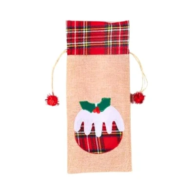 𝐂𝐇𝐑𝐈𝐒𝐓𝐌𝐀𝐒 𝐏𝐔𝐃𝐃𝐈𝐍𝐆 𝐏𝐑𝐈𝐍𝐓 𝐃𝐄𝐒𝐈𝐆𝐍: Festive Christmas pudding printed pattern adds a cheerful seasonal touch to wine and liquor bottles, making Xmas dinner tables, parties, and gift displays look warm, decorative, and inviting 𝐑𝐄𝐔𝐒𝐀𝐁𝐋𝐄 𝐁𝐔𝐑𝐋𝐀𝐏 𝐒𝐓𝐘𝐋𝐄 𝐌𝐀𝐓𝐄𝐑𝐈𝐀𝐋: Made from durable burlap hessian linen style fabric, this wine bottle cover is washable, reusable, and suitable for repeated Christmas use year after year 𝐒𝐓𝐀𝐍𝐃𝐀𝐑𝐃 𝟏𝟓𝐱𝟑𝟓𝐂𝐌 𝐒𝐈𝐙𝐄: Measures 15 x 35 cm to fit most standard wine and liquor bottles, allowing easy decoration without affecting pouring, handling, or storage 𝐄𝐀𝐒𝐘 𝐃𝐑𝐀𝐖𝐒𝐓𝐑𝐈𝐍𝐆 𝐂𝐋𝐎𝐒𝐔𝐑𝐄: Adjustable drawstring fastening allows quick bottle insertion and secure closure, keeping the cover neatly in place during meals and celebrations 𝐖𝐈𝐃𝐄 𝐃𝐄𝐂𝐎𝐑𝐀𝐓𝐈𝐕𝐄 𝐔𝐒𝐄: Ideal for Christmas dinners, parties, home tables, cafés, restaurants, hotel lobbies, or as a festive wine gift cover