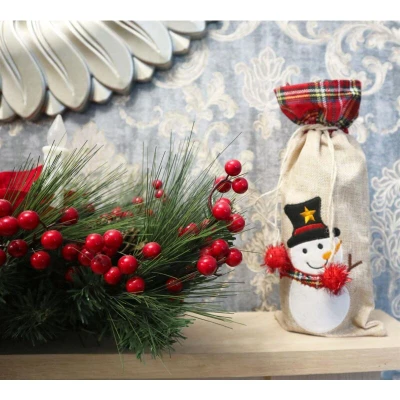 General description Add a festive touch to your holiday gatherings with this charming Christmas Wine Bottle Cover featuring a delightful snowman design. Made from durable burlap hessian linen, this cover not only protects your wine bottles but also serves as a unique decoration for your dinner table. The drawstring closure ensures a snug fit, making it a perfect gift for wine lovers during the holiday season. Technical specifications Dimensions: 15 x 35 cm Material: Burlap hessian linen Usage This wine bottle cover is ideal for holiday parties, family gatherings, or as a thoughtful gift. Simply slip it over your wine bottle and tighten the drawstring for a festive presentation.