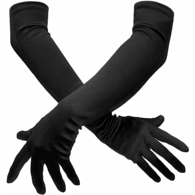 SHATCHI Women's Long Elbow Satin Stretchy 1920s Opera Evening Party Dance Wedding Prom Gloves (55 cm/20.5inch), Black, One Size