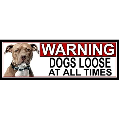 SHAWPRINT American Pit Bull WARNING DOGS LOOSE AT ALL TIMES METAL GATE SIGN 266mm x 87m. (894H2)