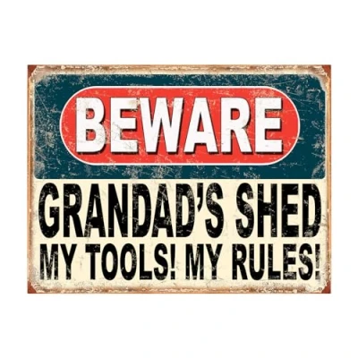 Shawprint Beware Grandad's Shed My Tools! Rules! Funny Metal Signs Home Pub Indoor & Outdoor Garden Bar Garage Vintage Wall Plaque Gift Retro (10 x 8)