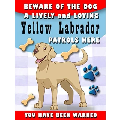 SHAWPRINT Beware Of The Dog Yellow Labrador Patrols Here Decorative Metal Sign/Plaque Pet Theme 200MM X 150MM (1938H1)