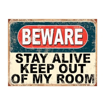 Shawprint Beware Stay Alive Keep Out Of My Room Funny Metal Signs Home Pub Indoor & Outdoor Garden Bar Garage Vintage Wall Plaque Gift Retro (10 x 8)