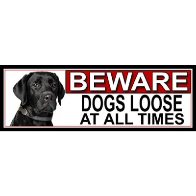SHAWPRINT Black labrador BEWARE DOGS LOOSE AT ALL TIMES METAL GATE SIGN 266mm x 87mm. (366H2)
