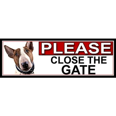 SHAWPRINT Bull Terrier PLEASE CLOSE THE GATE METAL SIGN 266mm x 87m. (844H2)