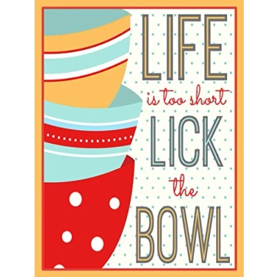 Shawprint LIFE IS TOO SHORT LICK THE BOWL FUNNY RETRO METAL TIN WALL PLAQUE SIGN NOVELTY GIFT Home bar kitchen shed man cave (150MM x 200MM 8" 6") 2196