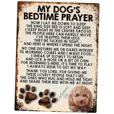 Shawprint Limited MY DOG'S BEDTIME PRAYER RETRO STYLE METAL TIN SIGN/PLAQUE (385DRS) COCKAPOO TAN