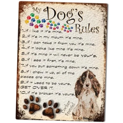 Shawprint Limited MY DOG'S RULES RETRO STYLE METAL TIN COCKER SPANIEL SIGN/PLAQUE THEME 10" X 8" (24DRM)