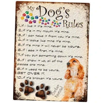 SHAWPRINT MY DOG'S RULES RETRO STYLE METAL TIN SIGN/PLAQUE COCKER SPANIEL THEME 8" x 6" (96DR)