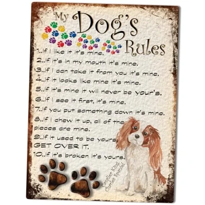 SHAWPRINT MY DOG'S RULES RETRO STYLE METAL TIN SIGN/PLAQUE DOG BREEDS 8" x 6" (Cavalier King Charles Spaniel Light Brown/White)