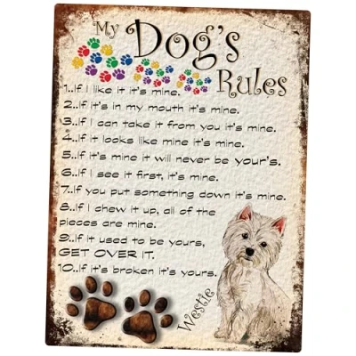 SHAWPRINT MY DOG'S RULES RETRO STYLE METAL TIN SIGN/PLAQUE DOG BREEDS 8" x 6" (Westie)