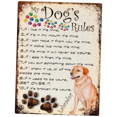 SHAWPRINT MY DOG'S RULES RETRO STYLE METAL TIN SIGN/PLAQUE LABRADOR THEME 8" x 6" (117DR)