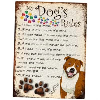 SHAWPRINT MY DOG'S RULES RETRO STYLE METAL TIN SIGN/PLAQUE STAFFIE THEME 8" x 6" (128DR)